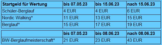 - Das Startgeld ist abhängig vom Wettbewerb und Anmeldezeitpunkt